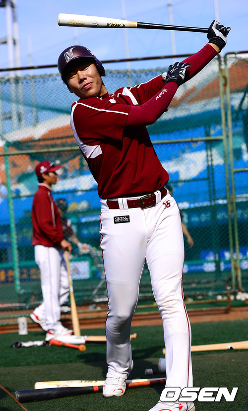 18일 오후 서울 목동구장에서 열리는 2012 팔도 프로야구 넥센 히어로즈와 삼성 라이온즈의 경기 전 넥센 강정호가 타격연습을 하고 있다