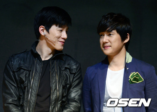 뮤지컬 '광화문연가' 프레스콜 질의응답 시간에 김무열이 송창의를 보며 웃고 있다. /정송이 기자 ouxou@osen.co.kr