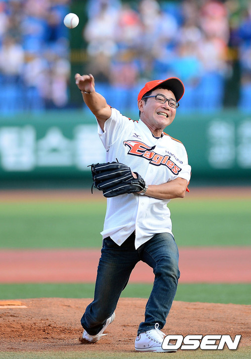 18일 오후 대전 한밭야구장에서 열린 '2012 팔도 프로야구' 한화 이글스와 SK 와이번스의 경기 시작전 이봉원이 시구를 하고 있다.