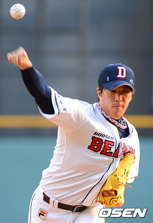 김승회는 올 시즌 두산의 5선발로서 4경기 1승 1패 평균자책점 4.57을 기록 중이다. 우천 휴식 두 번이 겹치며 등판 기회 두 차례 정도를 손해 봤던 김승회는 윤석민(KIA), 주키치 등 상대 팀 에이스를 상대로 밀리지 않는 호투를 펼쳤던바 있다. / sunday@osen.co.kr