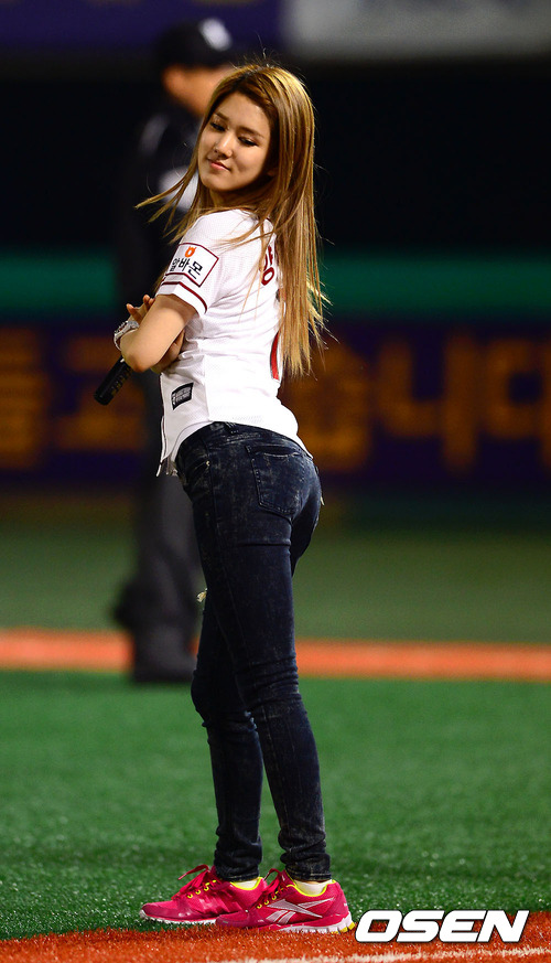18일 오후 서울 목동구장에서 열린 2012 팔도 프로야구 넥센 히어로즈와 삼성 라이온즈의 경기 클리닝 타임때 걸그룹 스피카가 멋진 무대를 펼치고 있다.