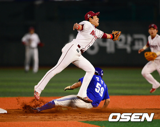 18일 오후 서울 목동구장에서 열린 2012 팔도 프로야구 넥센 히어로즈와 삼성 라이온즈의 경기 6회초 무사 1루 삼성 이승엽의 타석때 1루 주자 정형식이 2루 도루 성공하고 있다.