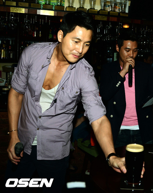 18일 오후 이태원 일대 '베이비 기네스'등 총 3곳에서 배우 정우성이 예고없이 깜짝 등장해서 현장에 있던 모든 사람들에게 맥주를 한잔씩 돌리는 깜짝 이벤트에서 정우성이 맥주잔을 들고 있다.