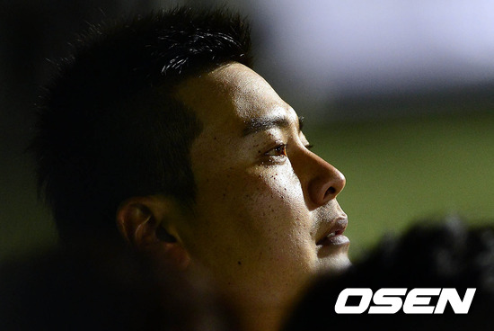 18일 오후 대전 한밭야구장에서 열린 '2012 팔도 프로야구' 한화 이글스와 SK 와이번스의 경기 8회초 김태균이 경기를 지켜보고 있다.