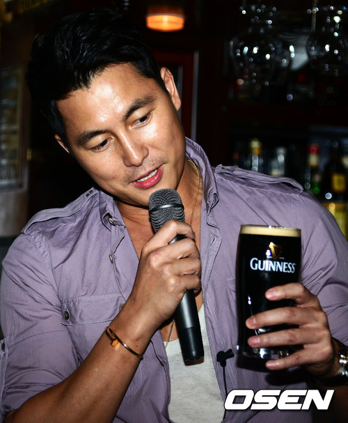 18일 오후 이태원 일대 '베이비 기네스'등 총 3곳에서 배우 정우성이 예고없이 깜짝 등장해서 현장에 있던 모든 사람들에게 맥주를 한잔씩 돌리는 깜짝 이벤트에서 정우성이 맥주에 대해 이야기를 하고 있다.