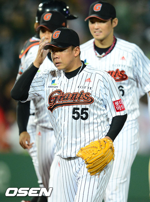 경기를 마치고 김사율이 땀을 닦으며 덕아웃으로 향하고 있다. / rumi@osen.co.kr