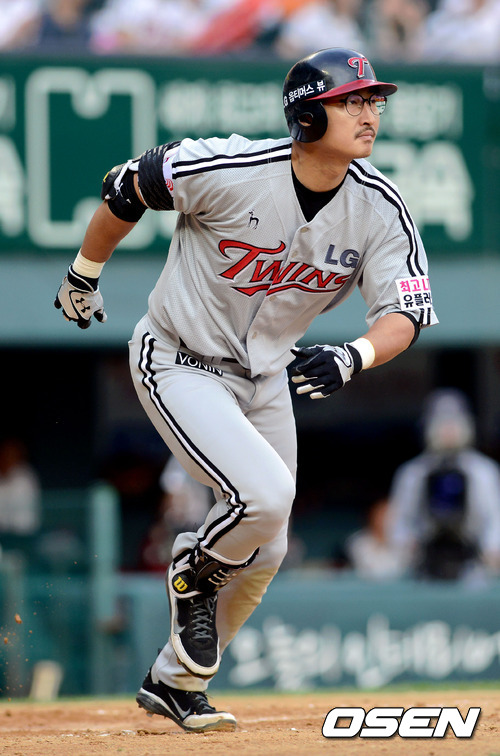 19일 오후 서울 잠실야구장에서 열린 '2012 팔도 프로야구' 두산 베어스와 LG 트윈스의 경기 5회초 1사 LG 박용택이 솔로 홈런을 치고 1루 베이스를 향해 달리고 있다.