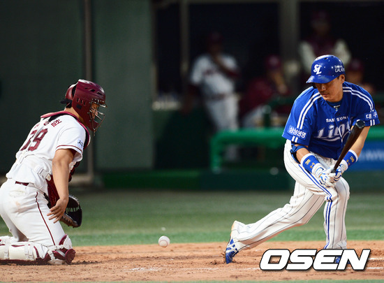 19일 오후 서울 목동구장에서 열린 2012 팔도 프로야구 넥센 히어로즈와 삼성 라이온즈의 경기 8회초 선두타자 이승엽 낫아웃 처리되고 있다.