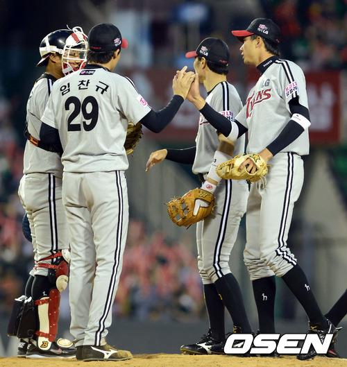 경기 종료후 LG 선수들이 마운드 위에서 기뻐하고 있다. / youngrae@osen.co.kr