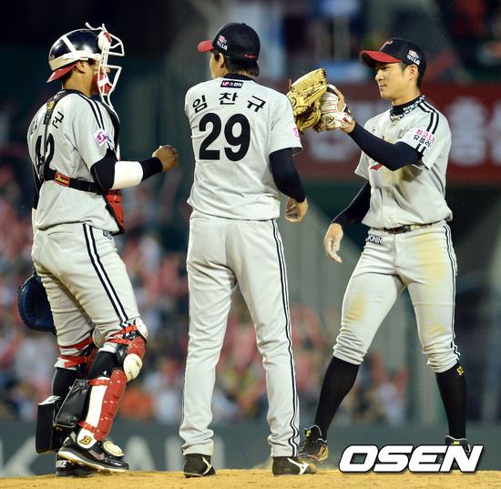 경기 종료후 LG 선수들이 마운드 위에서 기뻐하고 있다. / youngrae@osen.co.kr
