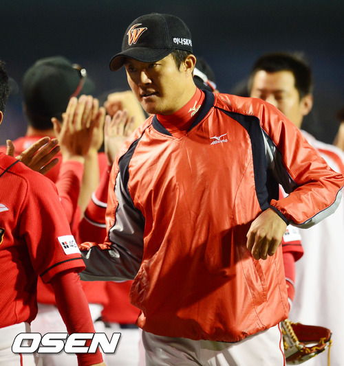 경기를 마치고 SK 이재영이 코치들과 하이파이브를 하고 있다. / rumi@osen.co.kr