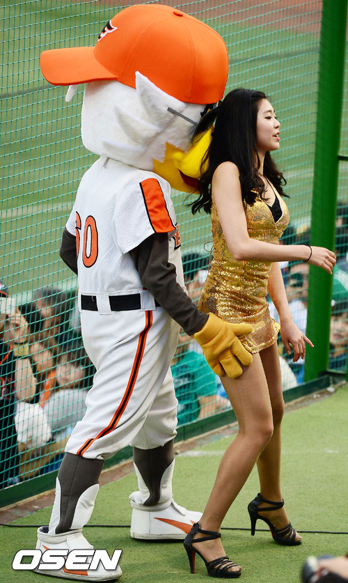 한화 치어리더와 한화 마스코트 위니가 듀엣 공연을 펼치고 있다. / rumi@osen.co.kr