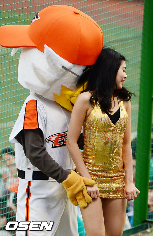 한화 치어리더와 한화 마스코트 위니가 듀엣 공연을 펼치고 있다. / rumi@osen.co.kr