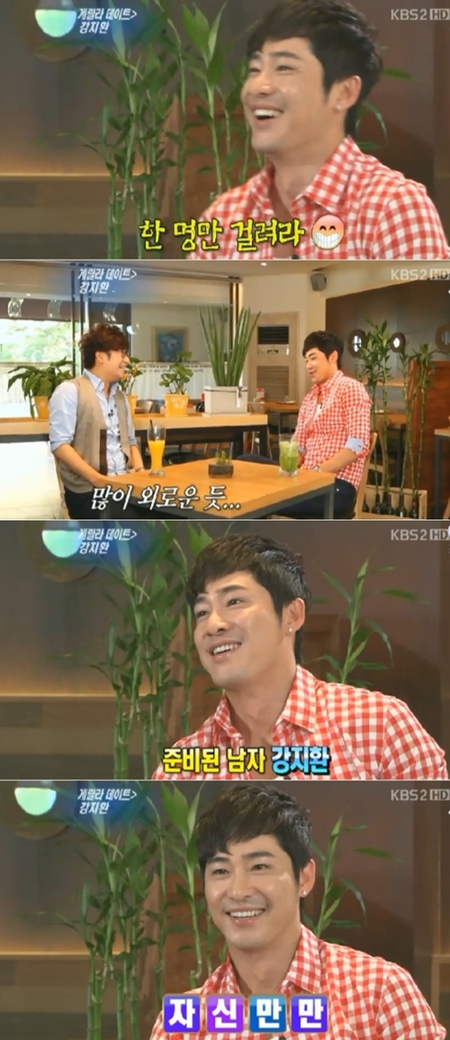 강지환은 19일 오후 방송된 KBS 2TV '연예가 중계-게릴라 데이트'에 출연해 "요즘 날씨도 좋고 속된 말로 한 명만 걸려라 하는 심정이다"고 밝혔다.