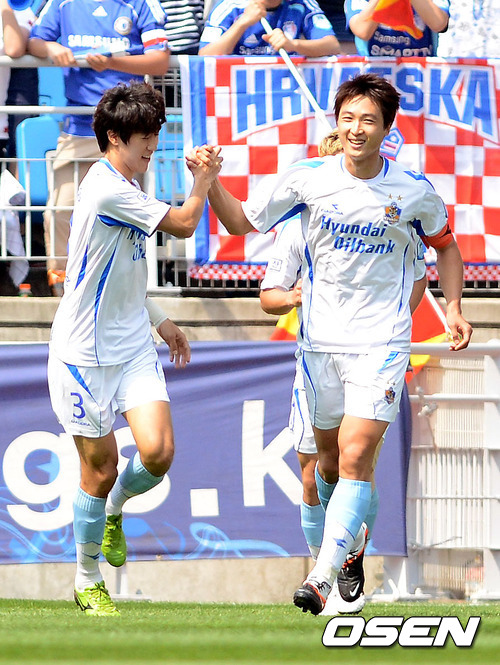 20일 오후 수원월드컵경기장에서 열린 '현대오일뱅크 K리그 2012' 수원 삼성과 울산 현대의 경기 전반울산 이재성이 선취골을 넣고 곽태휘와 기뻐하고 있다.