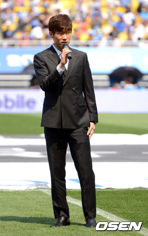 20일 오후 수원월드컵경기장에서 열린 '현대오일뱅크 K리그 2012' 수원 삼성과 울산 현대의 경기전 수원월드컵경기장을 찾은 박지성이 팬들에게 인사를 하고 있다.