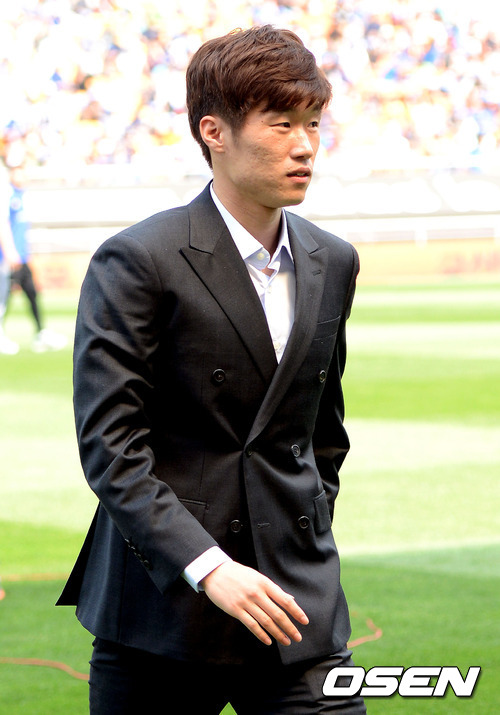 20일 오후 수원월드컵경기장에서 열린 '현대오일뱅크 K리그 2012' 수원 삼성과 울산 현대의 경기전 수원월드컵경기장을 찾은 박지성이 팬들에게 인사를 하고 있다.