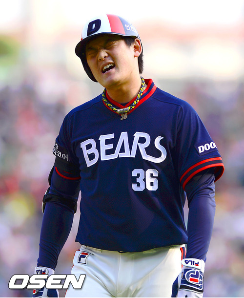 20일 오후 서울 잠실구장에서 열린 2012 팔도 프로야구 두산 베어스와 LG 트윈스의 경기 1회말 2사 1,2루 두산 이성열이 외야플라이 아웃된후 아쉬워하고 있다.