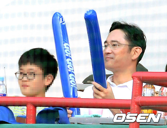 20일 서울 목동야구장에서 벌어진 '2012 팔도 프로야구' 넥센 히어로즈와 삼성 라이온즈의 경기 이재용 삼성전자 사장이 가족과 함께 경기장을 찾아 경기를 관전하고 있다.