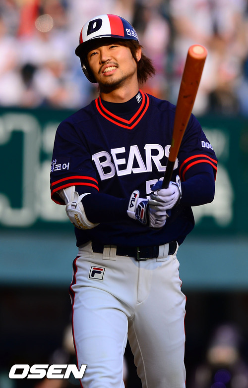 20일 오후 서울 잠실구장에서 열리는 2012 팔도 프로야구 두산 베어스와 LG 트윈스의 경기 2회말 2사 3루 두산 오재원이 삼진아웃되자 아쉬운 표정을 짓고 있다,