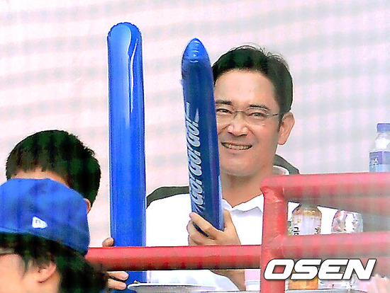 20일 서울 목동야구장에서 벌어진 '2012 팔도 프로야구' 넥센 히어로즈와 삼성 라이온즈의 경기 삼성전자 이재용 사장이 가족과 함께 경기장을 찾아 경기를 관전하고 있다.