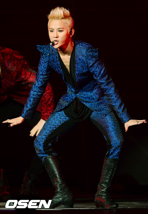 20일 오후 잠실 실내체육관에서 열린 JYJ 김준수-XIA 1st Asia Tour in Seoul’에서 JYJ 김준수가 화려한 안무를 선보이며 열창을 하고 있다.