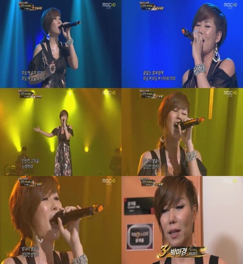 가수 박미경이 눈물을 쏟아내는 열정적인 무대를 선보였다.
