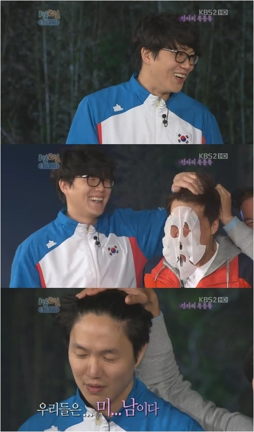 20일 방송된 KBS 2TV 예능 프로그램 ‘해피선데이-1박2일’에서 성시경은 주원과 함께 팩을 붙인 후 손을 데지 않고 빨리 떼는 경기를 했다. 성시경은 이를 위해 안경을 벗고 머리카락을 올린 후 팩을 붙였다.