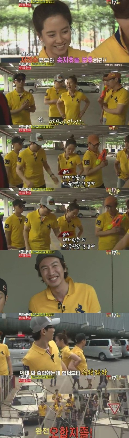 송지효가 "내가 (자객을) 막는 게 더 속 편할 것 같다"고 솔직하게 말하자 '런닝맨' 남자 멤버들은 상당히 민망해 하는 모습을 보였다.