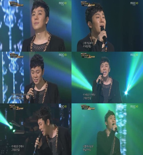 20일 방송된 MBC 예능 프로그램 '일밤-나는 가수다2’(이하 '나가수2')에서 정엽은 김완선의 곡 '나만의 것'을 열창했다.