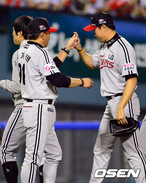 경기종료 후 LG 김기태 감독이 선수들과 손가락 세리머니를 하고 있다 / soul1014@osen.co.kr