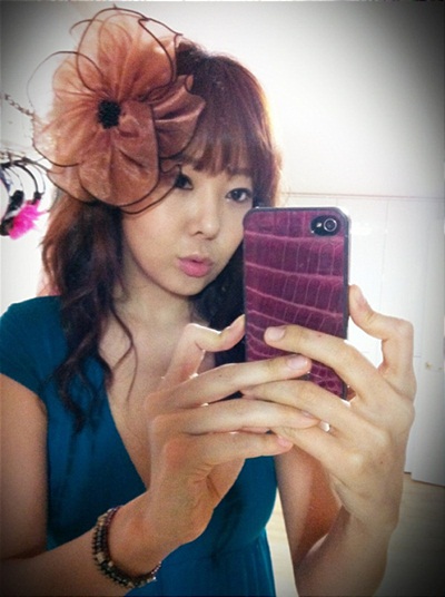 공개된 사진 속 소유진은 입술을 쭉 내밀고 귀여운 표정을 지으며 자신의 모습을 휴대전화로 찍고 있다. 특히 머리 크기 만한 꽃 머리핀과 가슴이 패인 파란 원피스는 눈길을 끌었다.