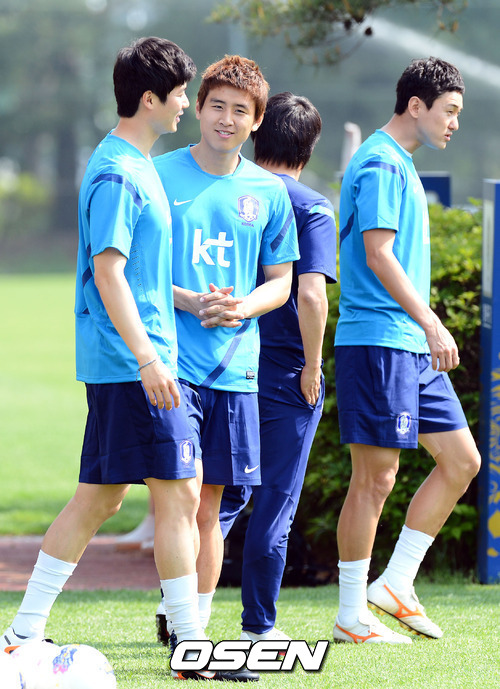 훈련에 앞서 기성용, 구자철이 이야기를 나누고 있다. /ajyoung@osen.co.kr