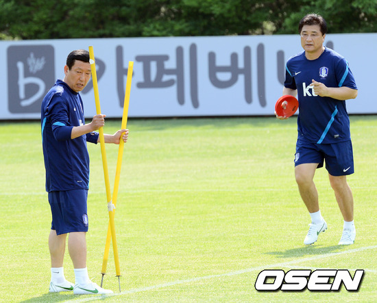 훈련에 앞서 최강희 감독이 훈련도구를 준비하고 있다. /ajyoung@osen.co.kr
