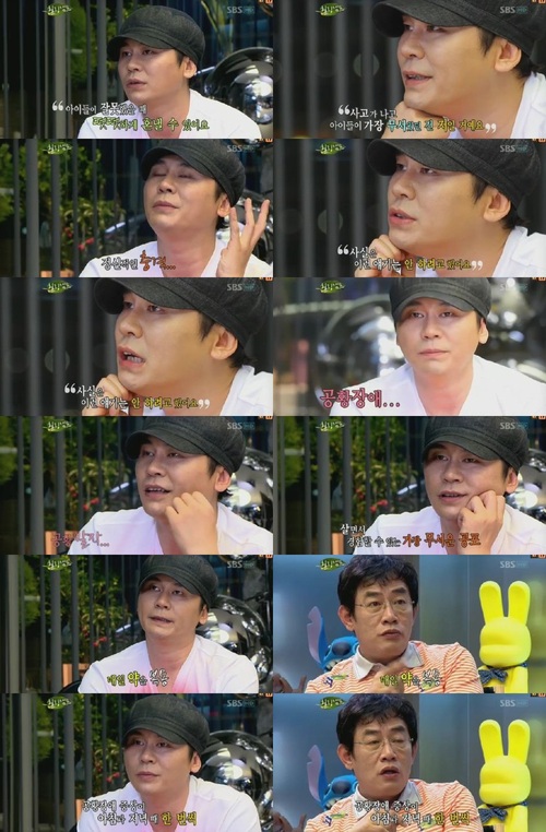 MC 이경규는 공황장애가 오면 운다고 밝히자 양현석은 "울 수 있을만한 여유가 없었다. 공황발작이 오면 10초 후에 죽을 것 같은 느낌 말로 표현할 수 없다"며 "내 몸안에 다른 사람이 들어와 있는 느낌이다"고 설명했다.