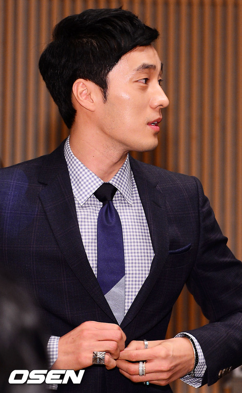 22일 오후 서울 SBS 목동 사옥 SBS홀에서 열린 드라마 스페셜 '유령' 제작발표회에서 소지섭이 인사를 하기 전 단추를 잠그고 있다.