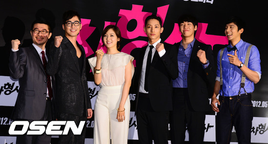 22일 오후 왕십리CGV에서 열린 영화 '차형사'(신태라 감독) 언론배급시사회에서 신태라 강지환 성유리 이수혁 김영광 신민철이 포토타임을 갖고 있다.