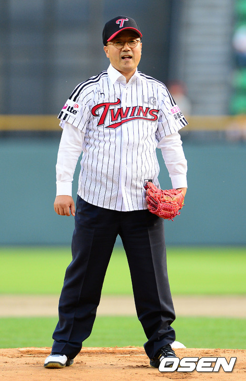 22일 오후 서울 잠실구장에서 열린 '2012 팔도 프로야구' LG 트윈스와 넥센 히어로즈의 경기, 경기전 프로야구 메인 스폰서 팔도 최재문 대표이사가 시구를 마치고 아쉬운 표정을 짓고 있다.