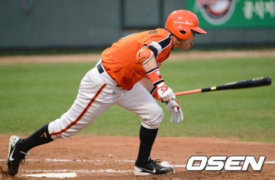 22일 오후 광주 무등야구장에서 열린 '2012 팔도 프로야구' KIA 타이거즈와 한화 이글스의 경기, 3회초 1사 1,3루 한화 장성호가 선제 1타점 적시타를 치고 있다.