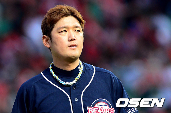 22일 오후 인천 문학구장에서 열린 '2012 팔도 프로야구' SK 와이번스와 두산 베어스의 경기 3회말을 마치고 김선우가 덕아웃으로 향하고 있다.