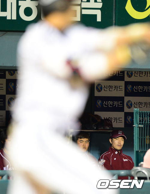 22일 오후 서울 잠실구장에서 열린 '2012 팔도 프로야구' LG 트윈스와 넥센 히어로즈의 경기, 5회말 넥센 김병현이 더그아웃에서 경기를 지켜보고 있다. 김병현은 25일 목동 한화전에 나설 예정이다.