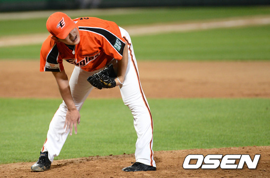 22일 오후 광주 무등야구장에서 열린 '2012 팔도 프로야구' KIA 타이거즈와 한화 이글스의 경기, 5회말 2사 1,3루 한화 양훈이 KIA 김선빈에게 볼넷을 허용하고 아쉬워하고 있다.
