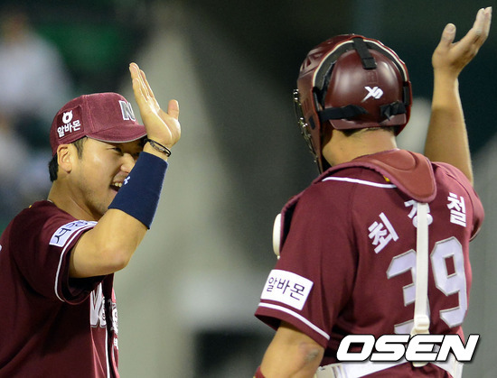 경기종료 후 넥센 최경철과 이택근이 승리를 기뻐하고 있다. / youngrae@osen.co.kr