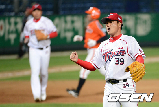 9회초 2사 만루 KIA 유동훈이 한화 오선진을 삼진으로 처리하고 환호하고 있다. / sunday@osen.co.kr