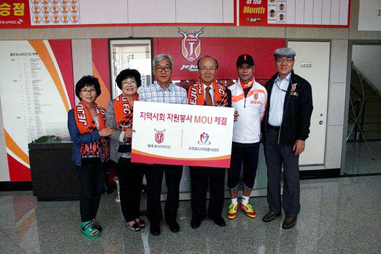 제주는 21일 구단 사무실에서 서귀포시자원봉사센터와 상호발전 및 지역자원봉사 활성화를 위한 업무협약(MOU)을 체결하고 향후 자원봉사 활동 전개 및 연계 지원 등에 대해 적극 협력키로 했다.