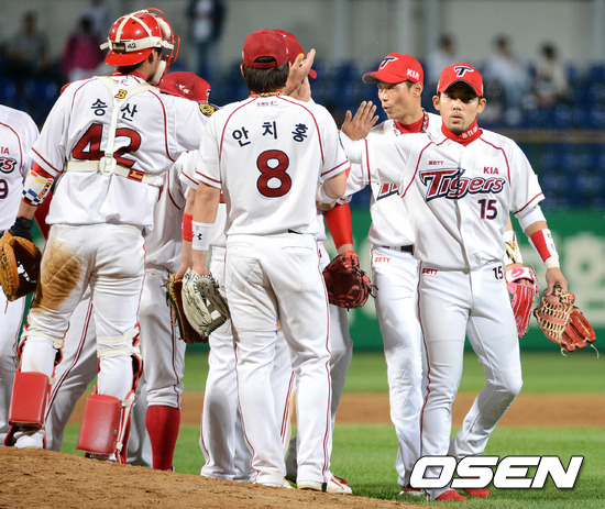 경기 종료 후 KIA 선수들이 승리의 기쁨을 나누고 있다. / sunday@osen.co.kr