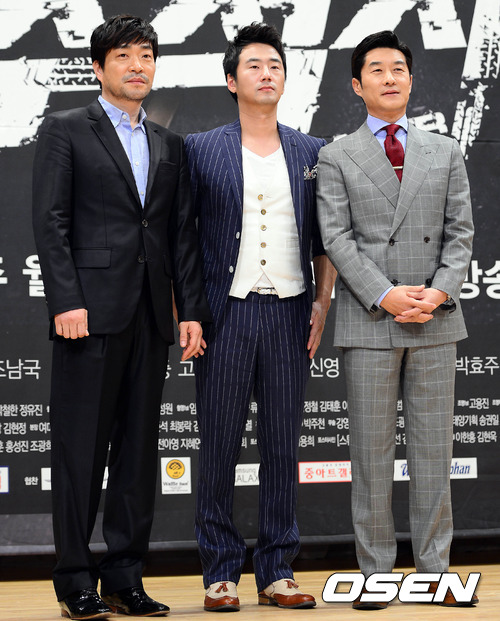 [OSEN = 백승철 기자] 24일 오후 서울 목동 SBS사옥에서 열린 SBS 새 월화드라마 제작발표회에서 손현주 류승수 김상중이 포토타임을 갖고 있다.