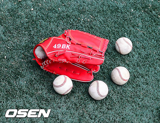 24일 오후 서울 잠실구장에서 '2012 팔도 프로야구' LG 트윈스와 넥센 히어로즈와의 경기가 열릴 예정인 가운데 훈련시간에 넥센 김병현의 글러브가 훈련장에 놓여져 있다.