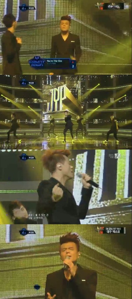 박진영은 24일 오후 방송된 엠넷 '엠카운트다운'에서 타이틀곡 '너 뿐이야'를 열창했다.