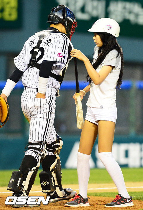 24일 오후 서울 잠실구장에서 열린 '2012 팔도 프로야구' LG 트윈스와 넥센 히어로즈와의 경기에서 4회초 1사 주자 1,2루 넥센 오윤 타석때 배트를 치우러 나온 배트걸이 뒤돌아 섰을때 LG 심광호 포수를 발견하고 깜짝 놀라고 있다.